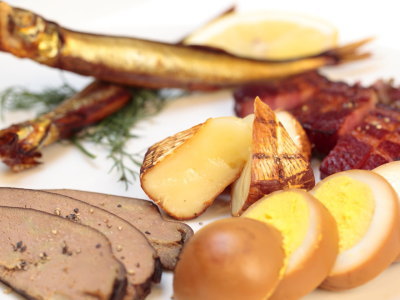 熊五郎の手作り燻製。リンゴのチップを使った香り高い燻製です。